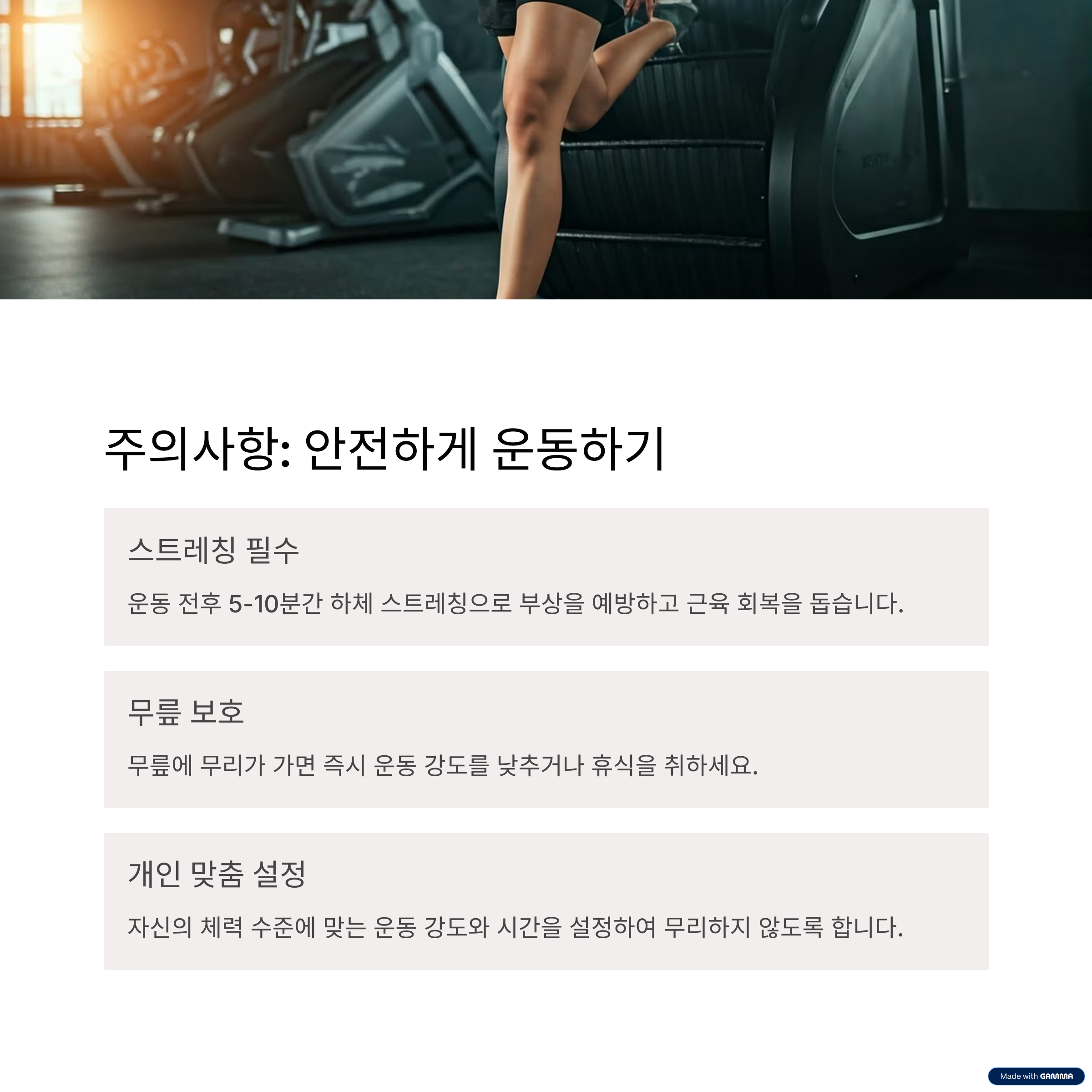 | 대퇴사두근 | 허벅지 전면 강화 | 걷기보다 높은 부하 |